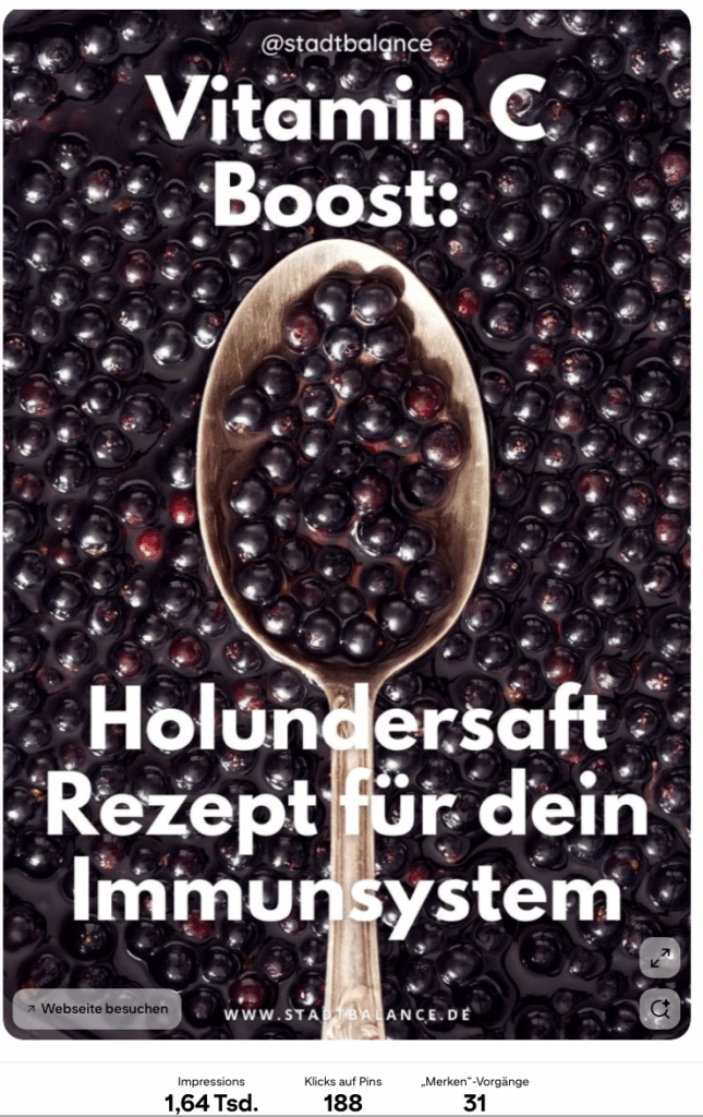 Beispiel: Auf meinem Blog „StadtBalance“ bekomme ich regelmäßig über Pinterest mehrere hundert Leser pro Woche. Ein einziger gut rankender Pin bringt manchmal über Monate Besucher.